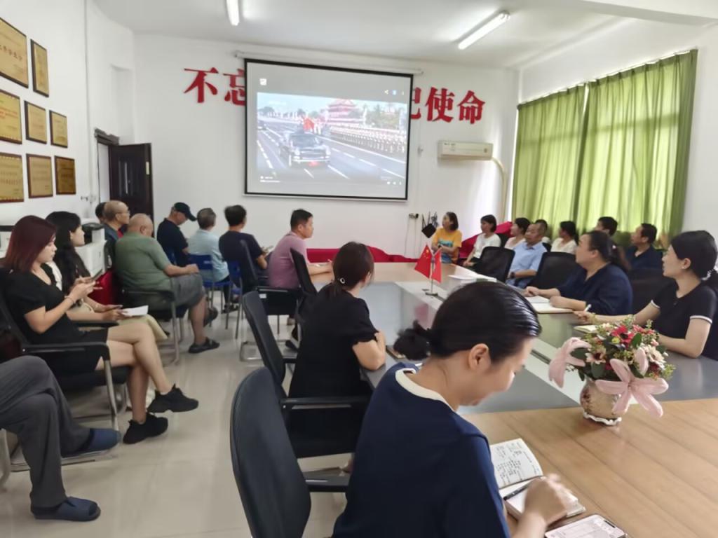9月3日上午学院领导和师生代表到学校报告厅集中收看阅兵直播盛况。下午2点,学院组织全院教职工和各班学生、学生党员分别在会议室、教室和学生公寓一站式服务中心观看阅兵录播视频。随着雄壮的中华人民共和国国歌奏响,会议室全体人员自发起立,神情肃穆地向国旗行注目礼,爱国情怀在这一刻凝聚升华。