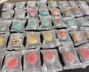 包馅环节,完成面皮按压、馅料放置、包裹搓圆等流程。部分出现的“馅料外露”问题,查看秘书部部长提前准备的教程PPT,了解“边缘向中心渐进推压、手指力度均衡控制”的操作方法,跟着PPT里的步骤调整后,原本歪歪扭扭的月饼坯渐渐变得规整,大家也有了成就感。压模环节。干部们自主选取对应花纹模具,将成型月饼坯精准放入模具型腔,通过平稳施压、缓慢脱模等操作,完成祥云纹、玫瑰花纹等图案的精准复刻,成品冰皮月饼外皮晶莹、纹路清晰,视觉效果完美。完后完成月饼托盘分装与封装,活动按照高效有序的推进节奏,团队协作效能充分发挥。