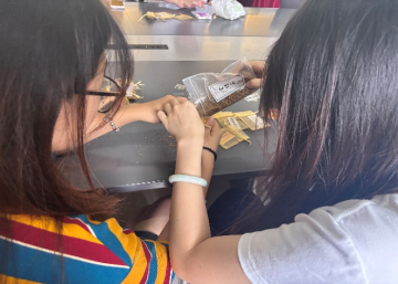 活动前期筹备工作,现场各物品陈列。冰皮粉、豆沙馅、草莓馅、咸蛋黄馅等原材料分类摆放,传统祥云纹、玫瑰花纹、简约几何纹等模具有序排布,为活动开展提供充足物资保障。准备好后蔡宏艳老师通过冰水配比调控、反复揉搓等步骤,将松散冰皮粉制作成细腻柔韧的面团,随后将面团均匀分制成小剂子分给各学生会干部,开始了做月饼。