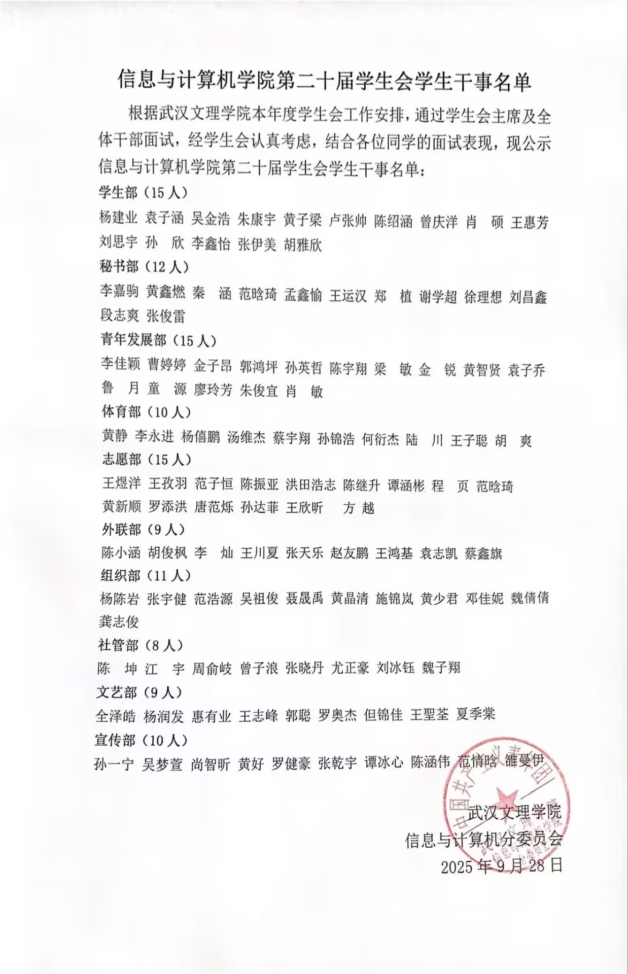 至此,信息与计算机学院学生会2025年秋季招新面试工作已圆满落下帷幕。我们坚信,这批新鲜血液的注入,必将使学生会焕发新的光彩,共同书写信息与计算机学院学生工作的新篇章!